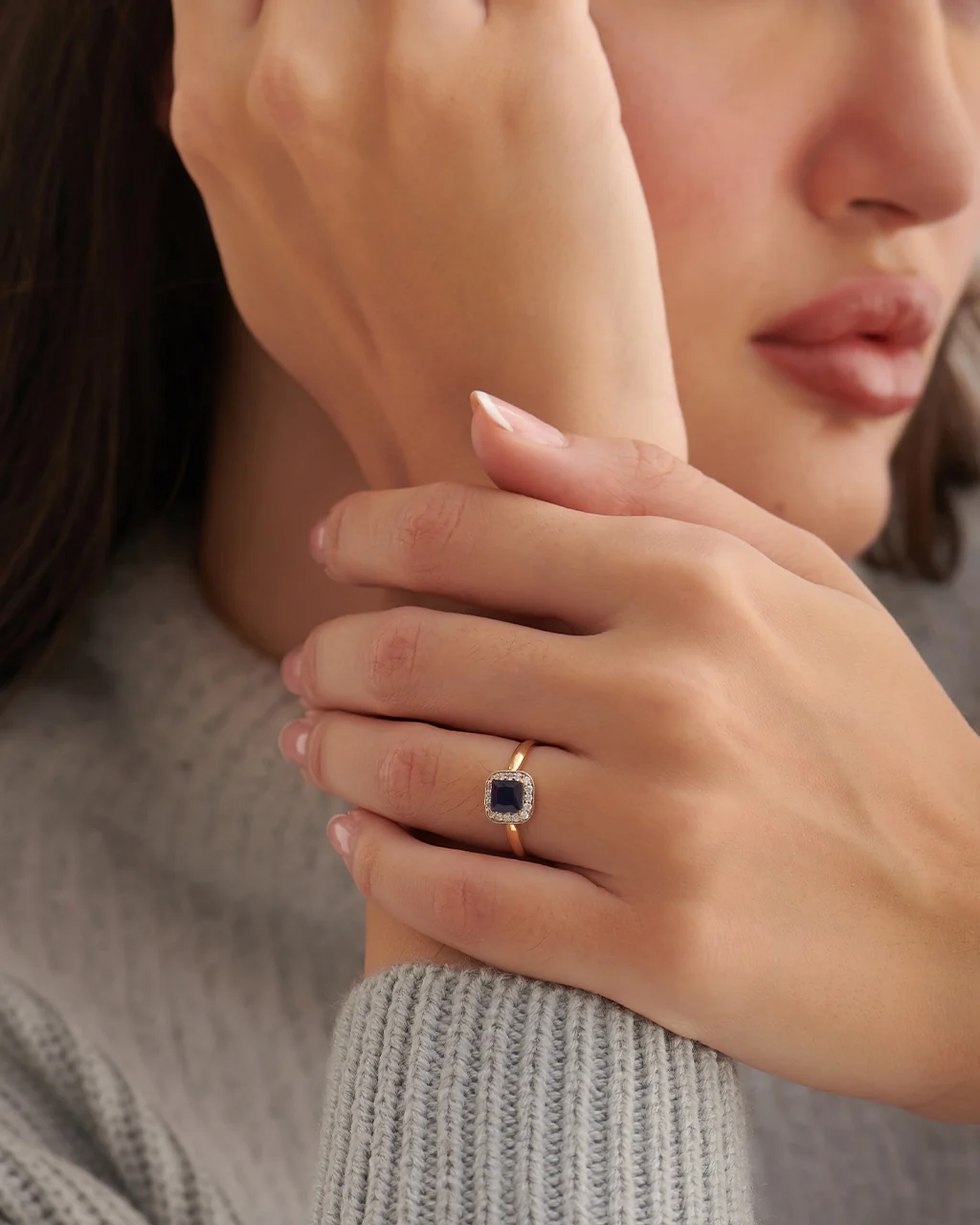 Created Blue Sapphire & Diamond Ring