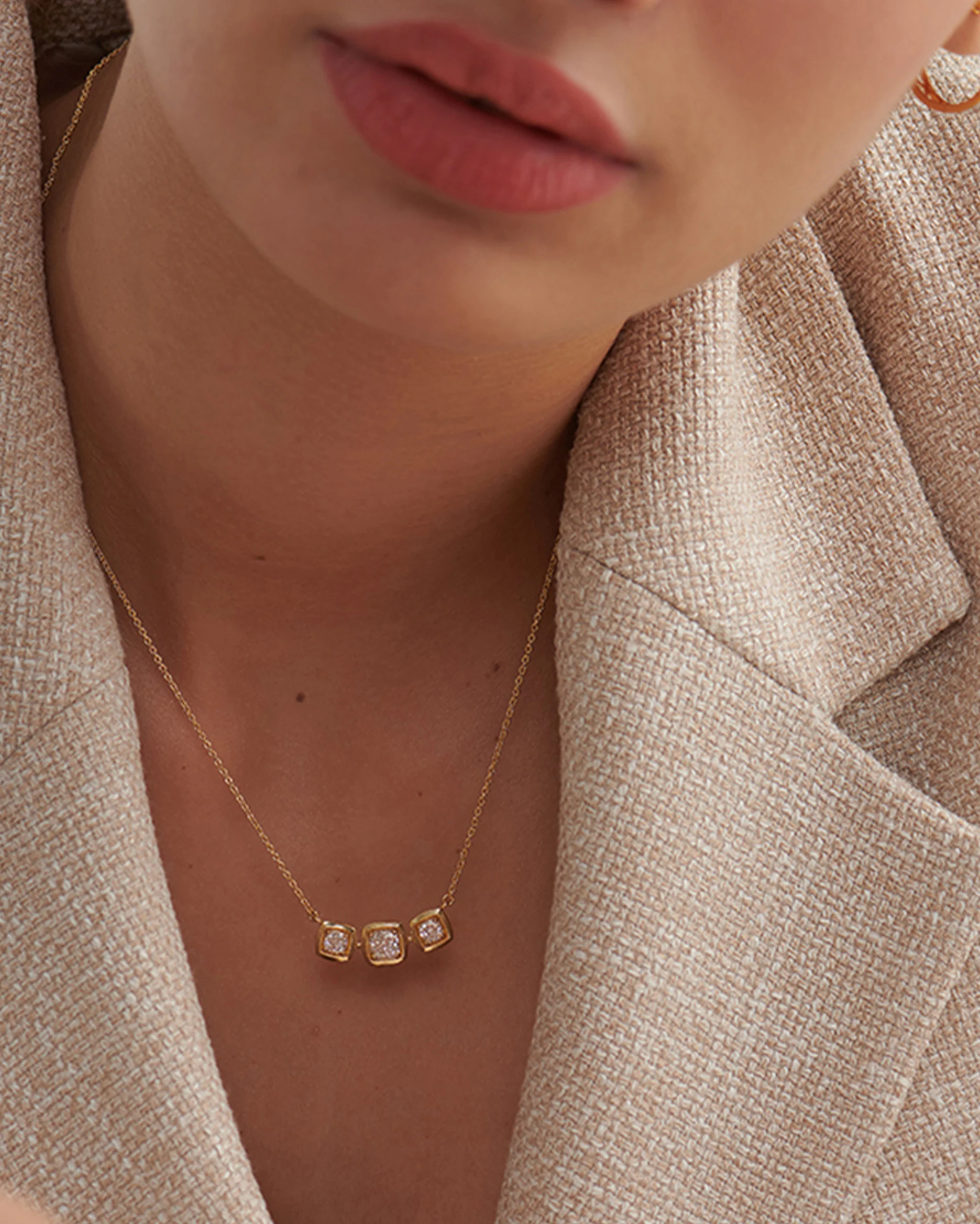 Add a twist to the classic solitaire necklace with this Three Stone Solitaire Necklace. The five sparkling diamonds in a row is the perfect accessory for everyday wear.