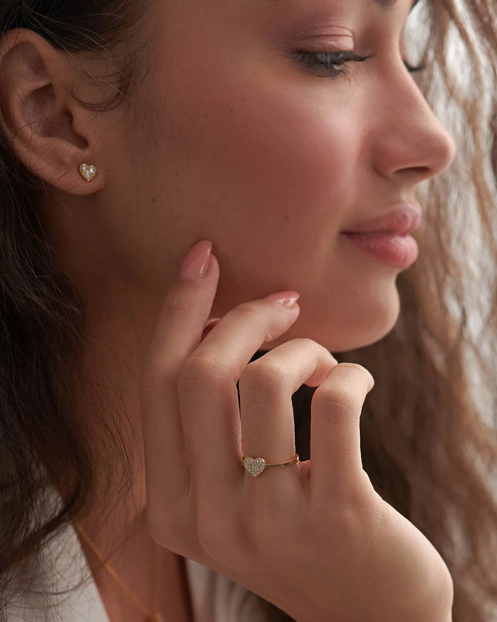 Wear your heart on your finger with this heart pave diamond ring. The heart-shaped design embellished with shimmering diamonds will make your heart skip a beat.
