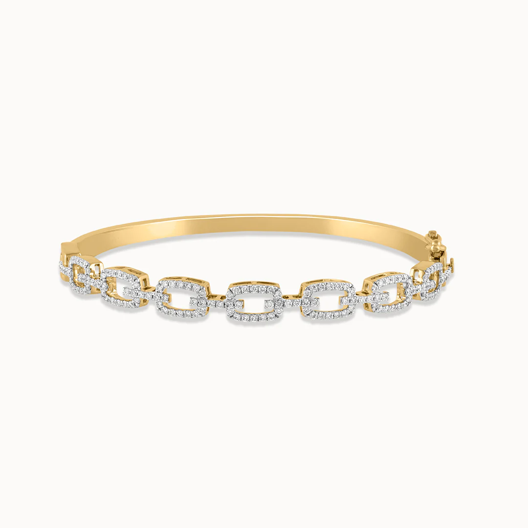 The Interlinked Diamond Paperclip Oval Bracelet merges modern design with classic sparkle. Crafted in 14K Vermeil Gold, this bracelet features interlinked paperclip motifs adorned with lab-grown diamonds. The unique combination of shapes and sparkle creates a contemporary yet timeless look, perfect for any occasion.
