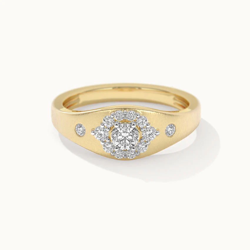 This minimalist and sleek Modern Diamond Signet Ring features a signet design with a single diamond accent, exuding sophistication and elegance. It's the perfect accessory to elevate your style with a contemporary twist.