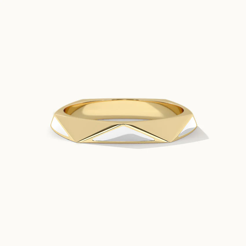 Add an edgy touch to your style with this pyramid ceramic band. The pyramid-shaped design adds a modern and stylish element to your look.
