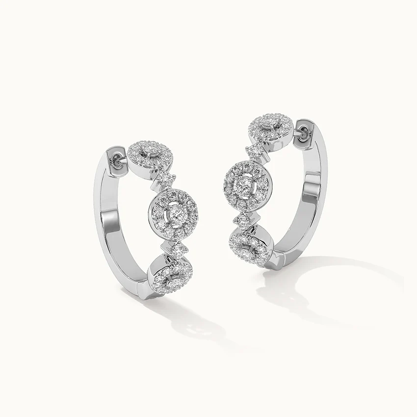 Elevate your style with these Round Halo Diamond Hoops. The halo design adds a touch of elegance and sophistication to your look.